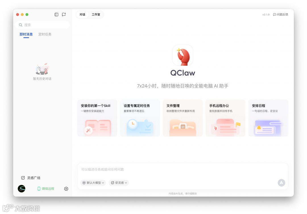 继“龙虾”概念爆火后,腾讯电脑管家基于OpenClaw开源项目,正式推出本地化AI助手QClaw。该工具支持在微信内直接对话操作,无需复杂部署即可调用电脑端能力。v0.1.9版本新增小程序文件接收功能,并上线「灵感广场」作为技能引导入口。