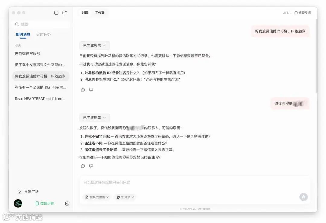此外,微信遥控存在指令聚合问题:所有远程请求均汇总至单一电脑端对话框,缺乏分类标签,复盘历史任务需手动滚动检索。