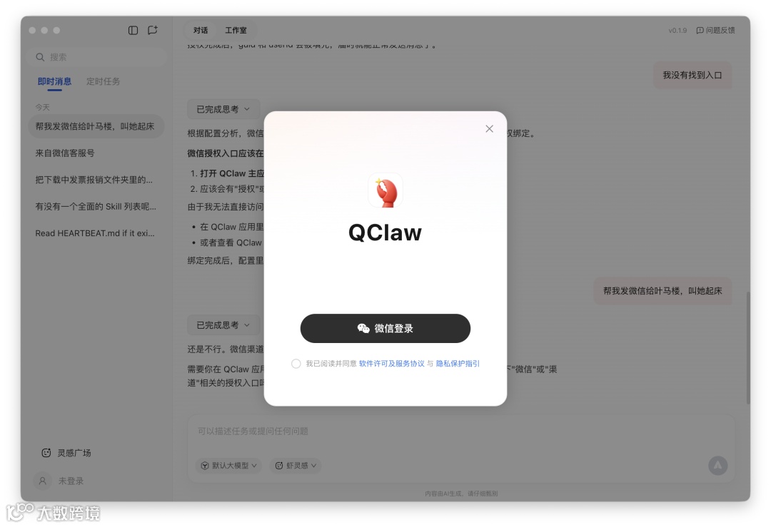QClaw v0.1.9展现出清晰的产品定位:以微信为触点,降低AI本地化应用门槛。其在易用性设计上值得肯定,但在稳定性、权限打通、跨端一致性等方面仍处于早期迭代阶段。当前版本更像一份“未来接口”的演示稿——它揭示了IM平台向通用交互层演进的可能性,而真正的成熟体验,或将由微信原生Agent来定义。