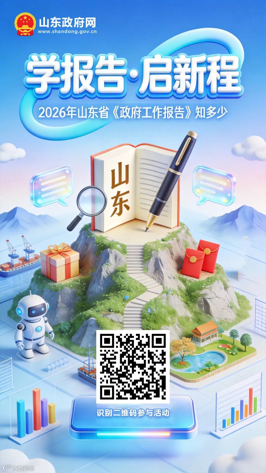 由山东省人民政府办公厅、山东省人民政府研究室指导,山东省人民政府网主办,齐鲁晚报·齐鲁壹点承办的“学报告·启新程 2026年山东省《政府工作报告》知多少”线上答题活动即日起上线。