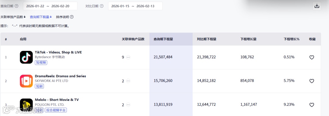 Insightrackr数据显示,双节期间短剧、短视频应用整体呈稳健增长态势,头部短剧应用在斋月与春节双区下载量均实现提升。