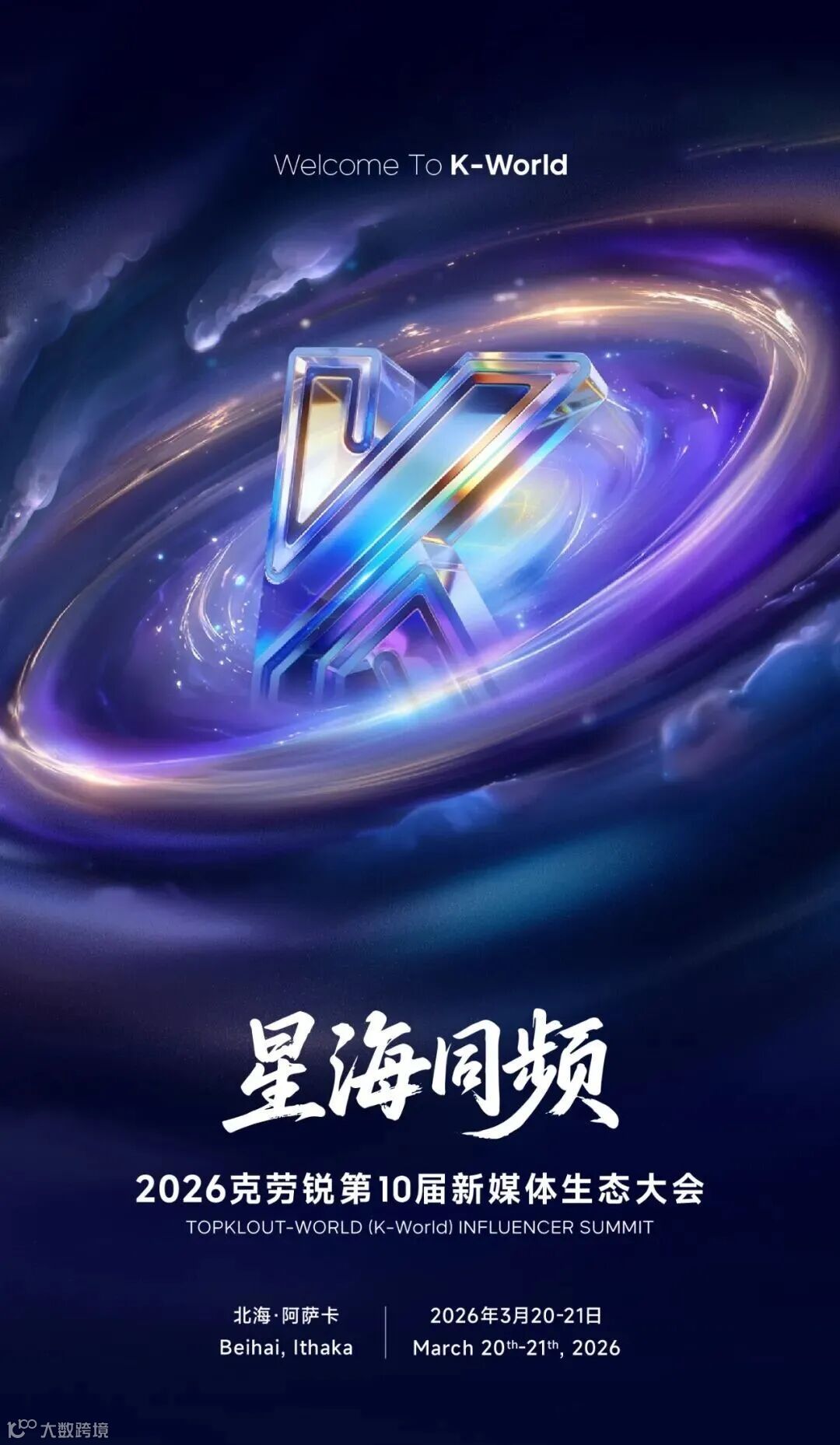 3月20日—21日,广西北海将迎来「克劳锐第10届新媒体生态大会(K-World)」。这场以“星海同频”为主题的十年盛典,不仅是国内内容生态的高光盛会,更是全网流量的重要聚合场——近百位千万级粉丝顶流创作者、100+海内外知名MCN机构及近百位品牌代表将齐聚阿萨卡。水系红毯、30分钟Live Show、星光晚宴等重磅环节,集中展现中国内容产业的蓬勃势能。