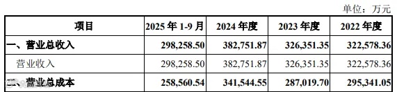 主要财务数据(2022–2024年及2025年1–9月)