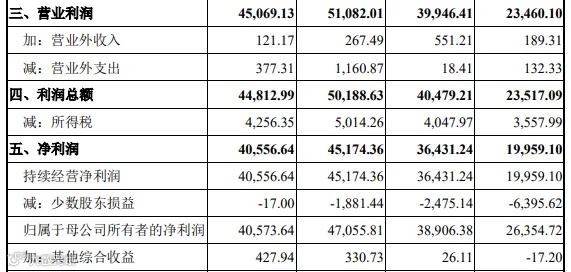营业收入分别为15.75亿元、18.05亿元、18.17亿元、8.54亿元;归母净利润分别为1.73亿元、2.00亿元、2.10亿元、1.23亿元。