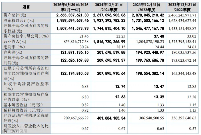 主要财务数据(2022–2024年及2025年1–6月)