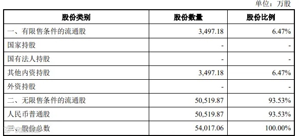 截至2025年9月30日,总股本54,017.06万股,股权结构如下: