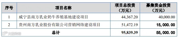 拟募资5.50亿元,用于威宁县南方乳业奶牛养殖基地建设项目、贵州南方乳业营销网络建设项目。