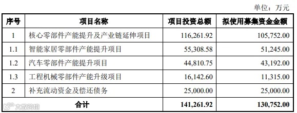拟募资13.08亿元,用于核心零部件产能提升及产业链延伸项目、补充流动资金及偿还债务。