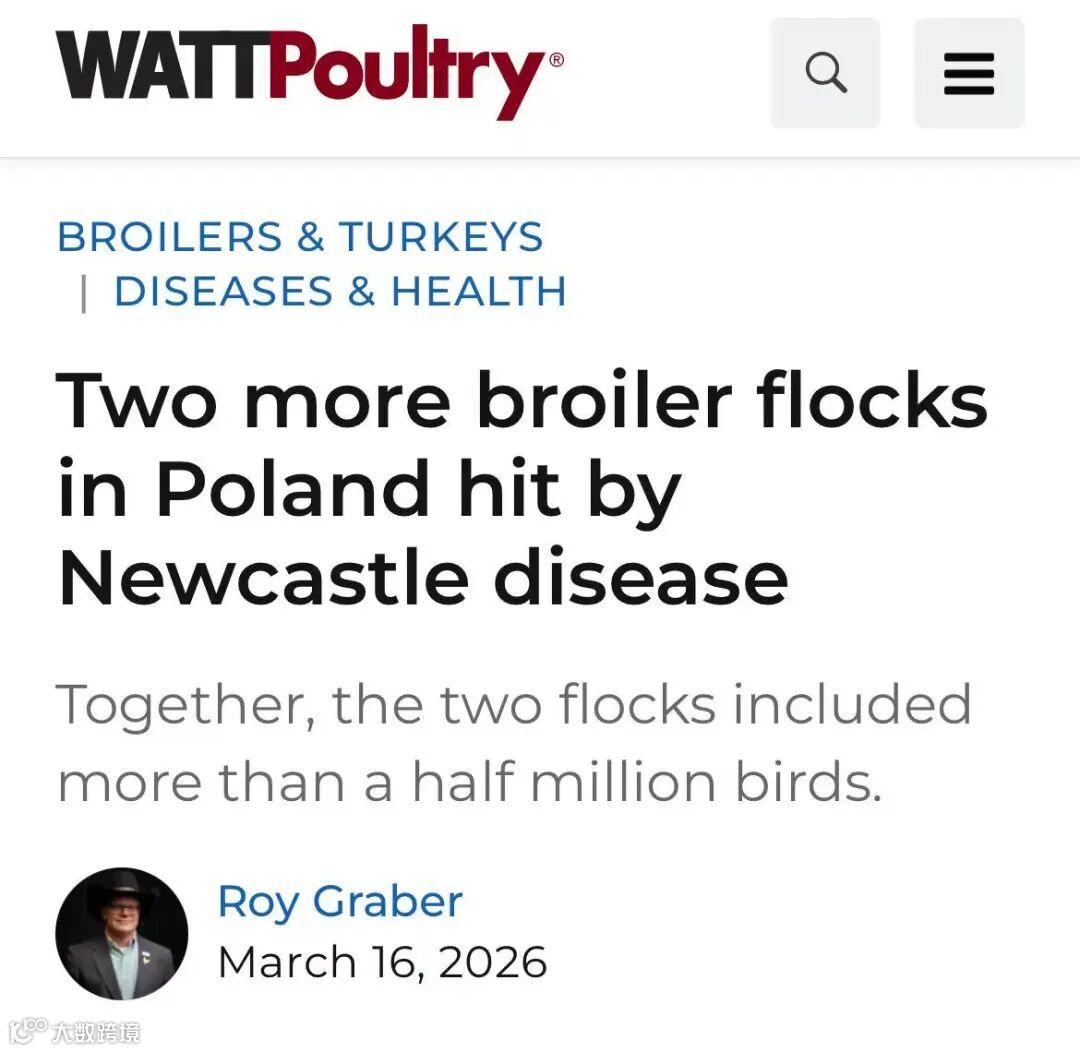 波兰两家肉鸡场暴发新城疫,累计扑杀超50万只 |
