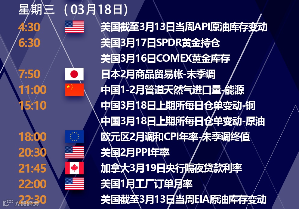 3月18日(周三)重点数据和大事件