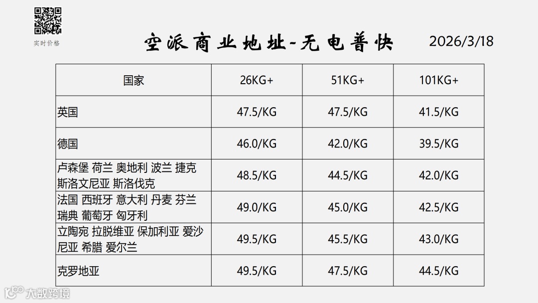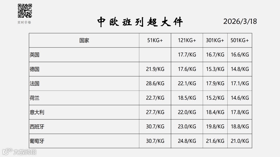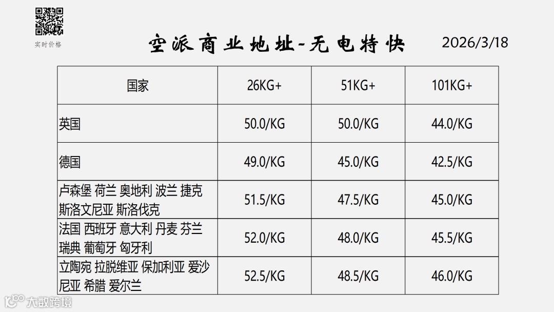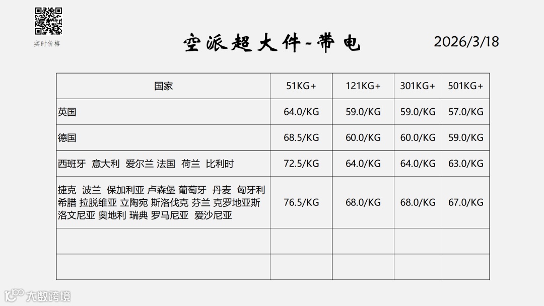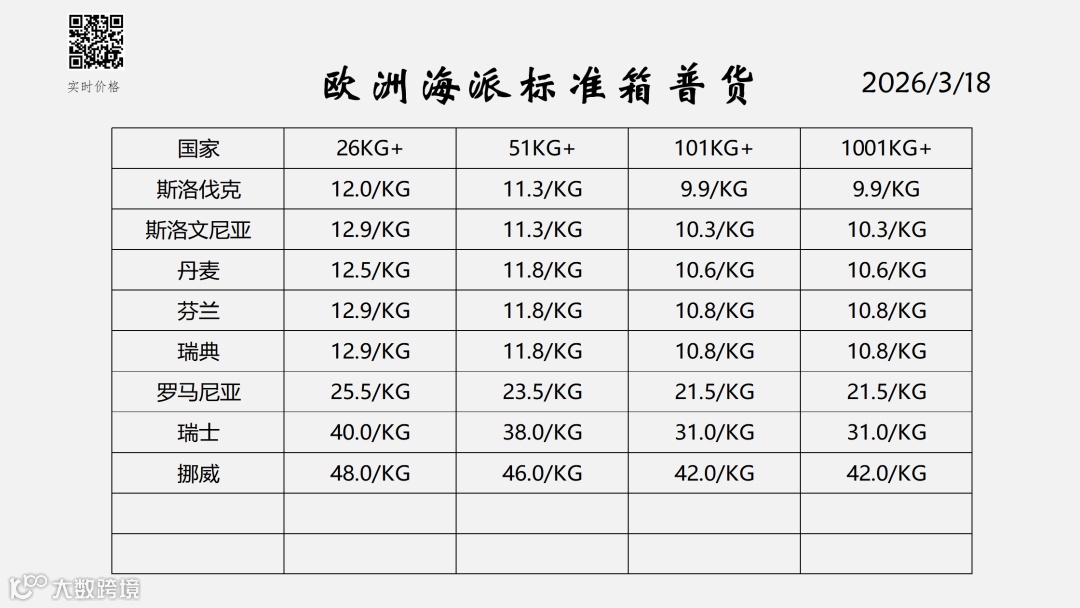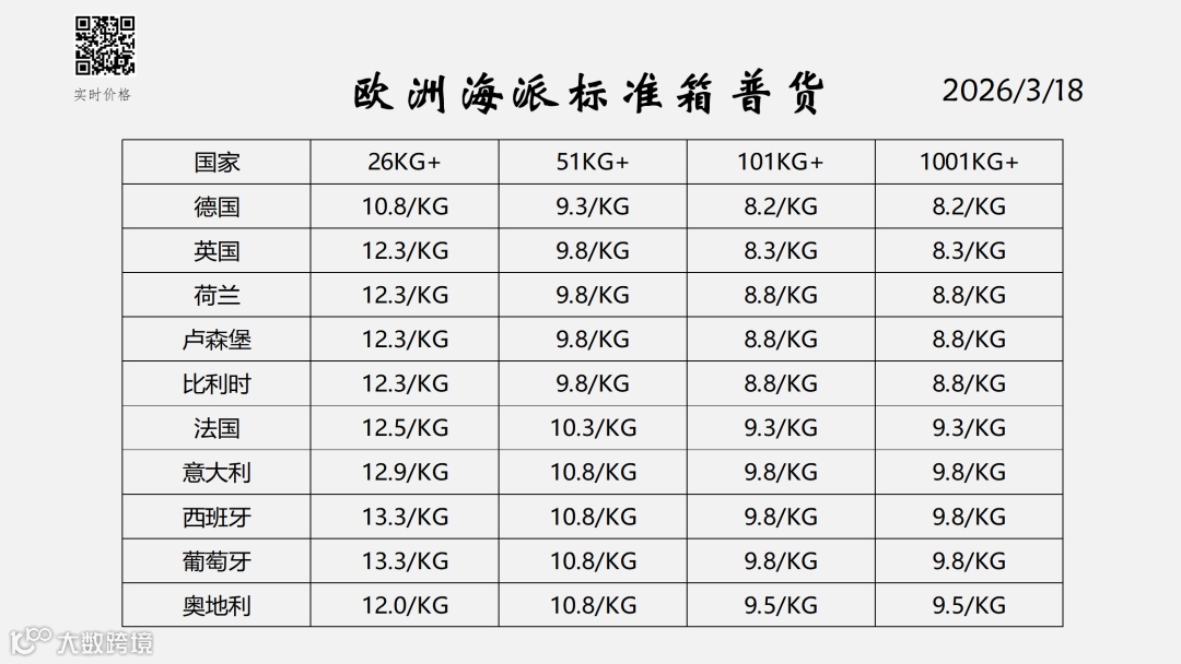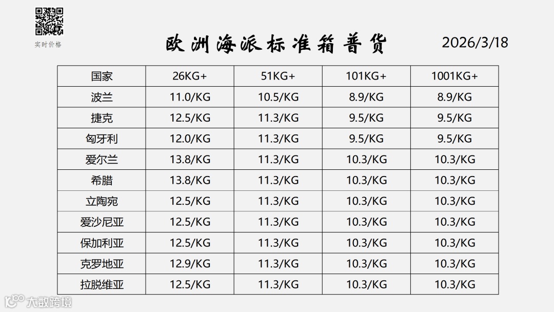 欧洲空派超大件双清包税服务价格表;完整报价请与业务员确认。