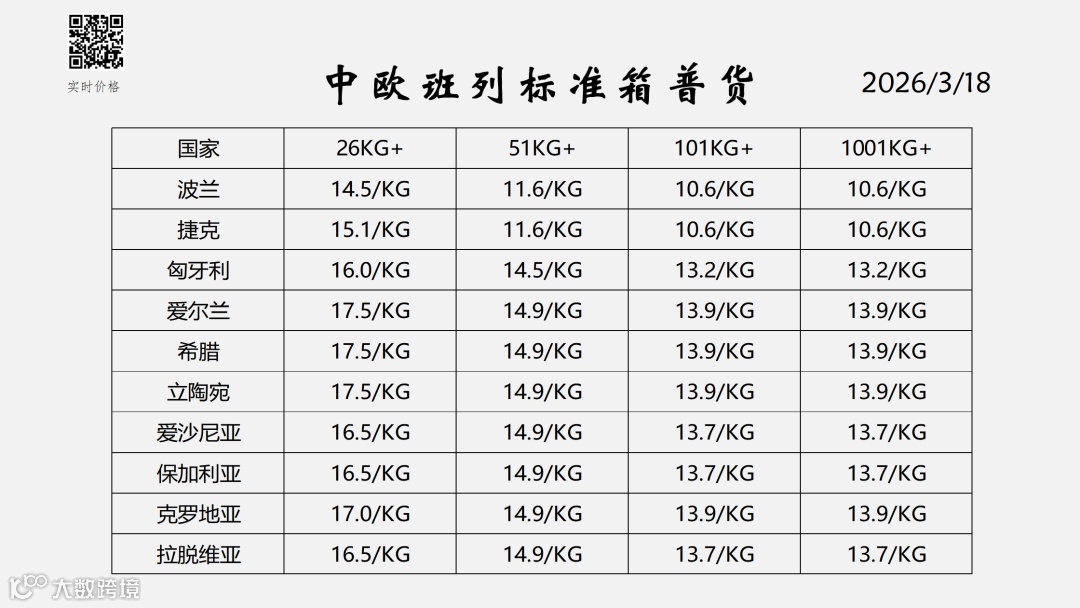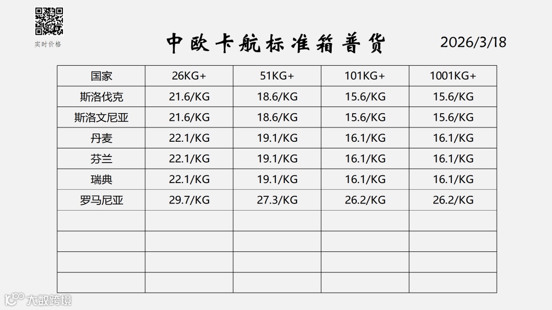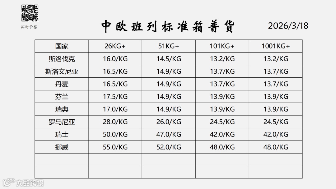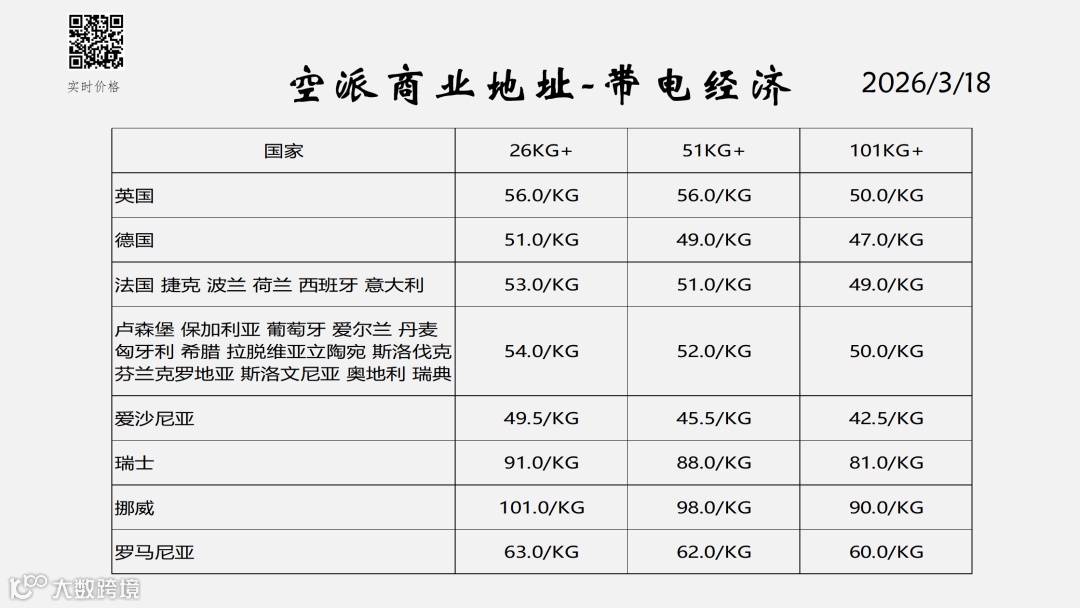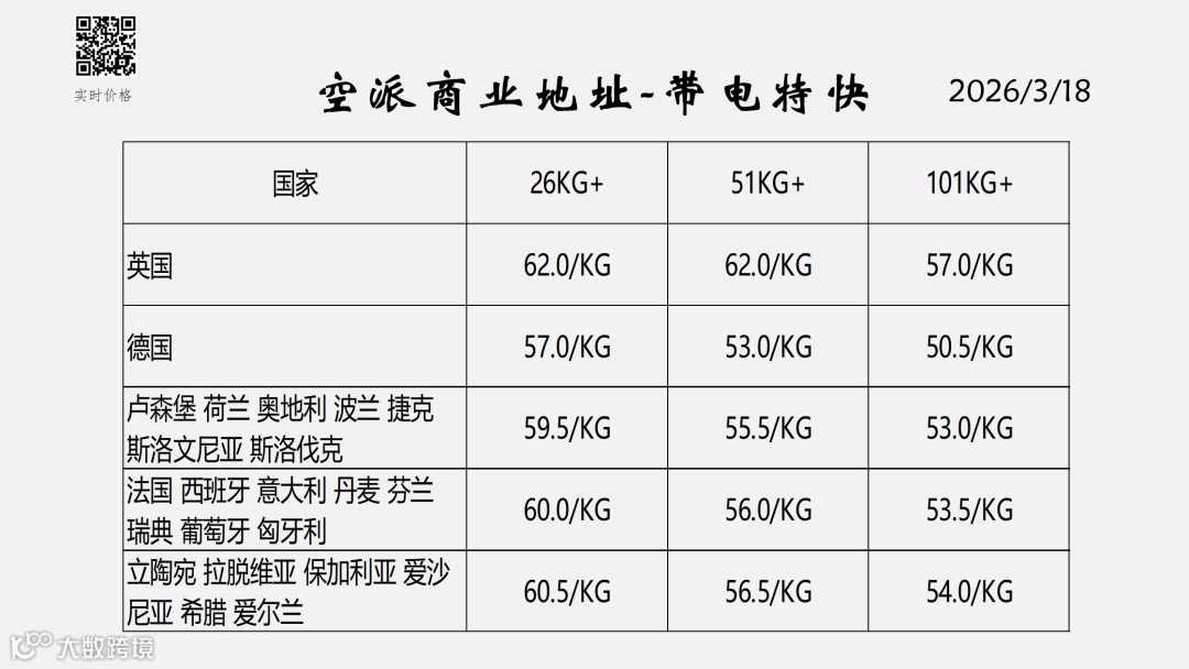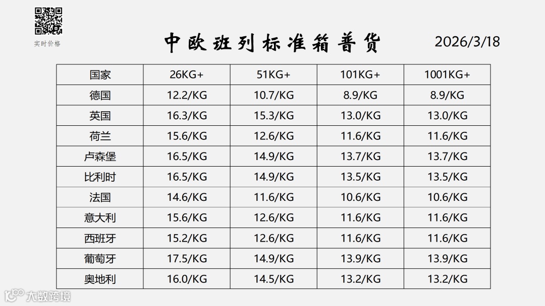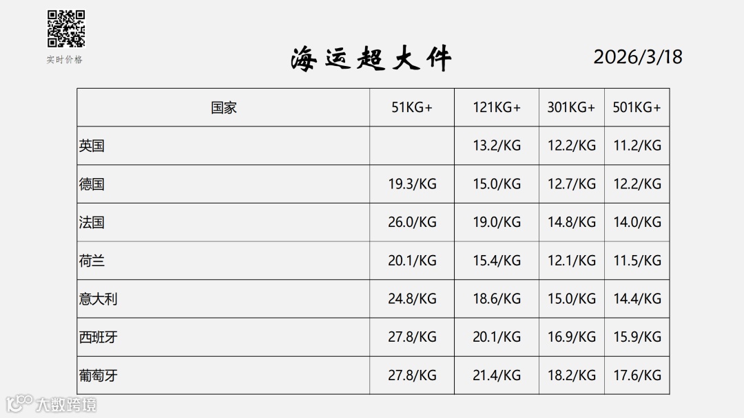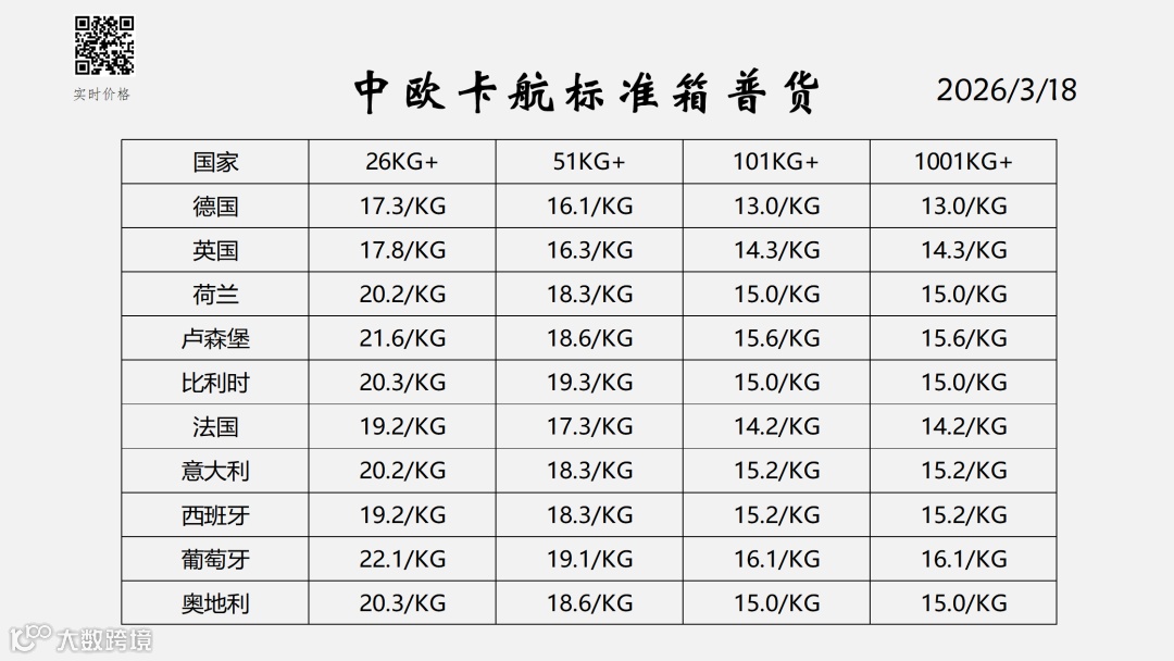 欧洲空派超大件双清包税服务价格表;完整报价请与业务员确认。