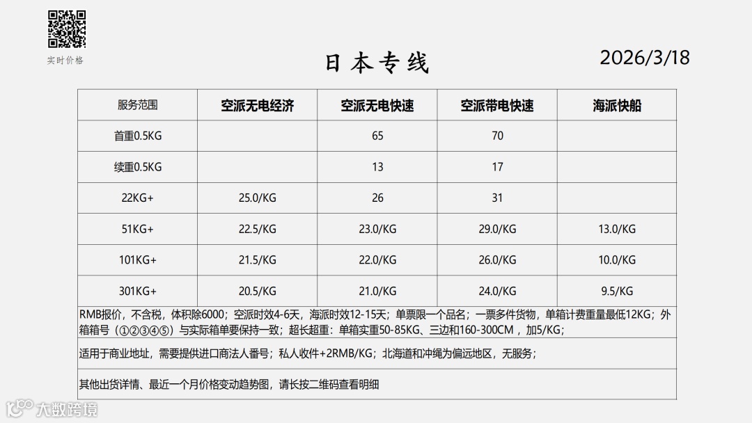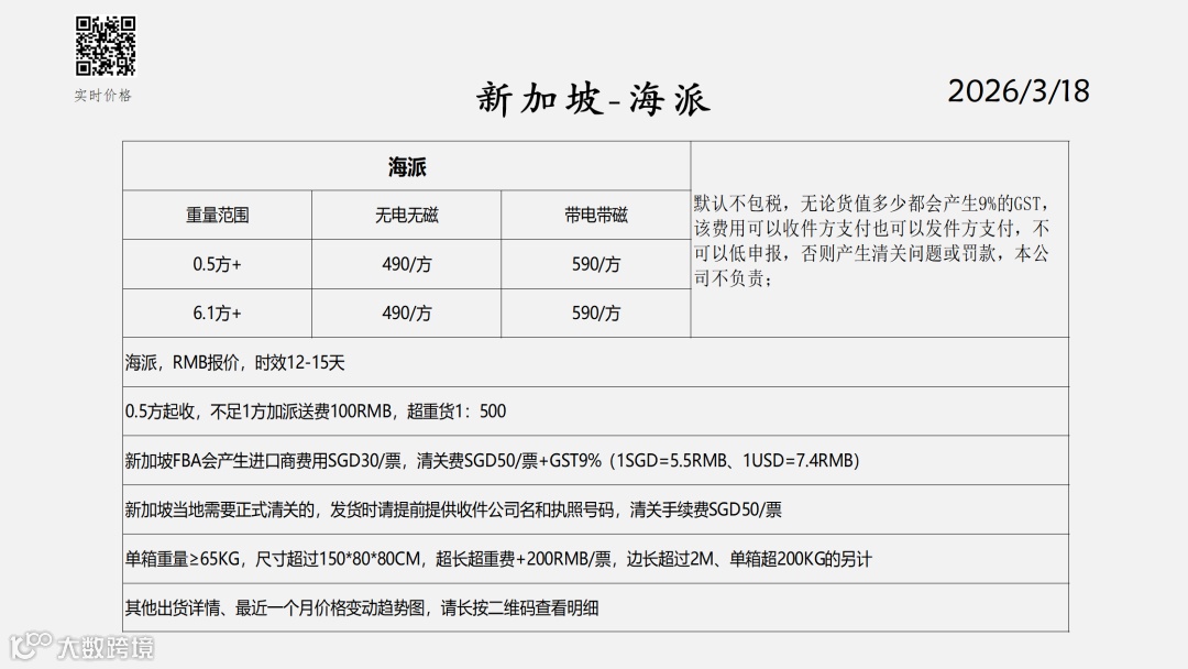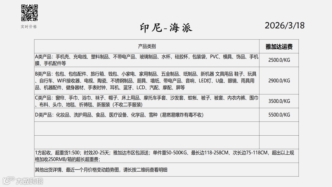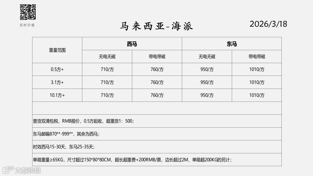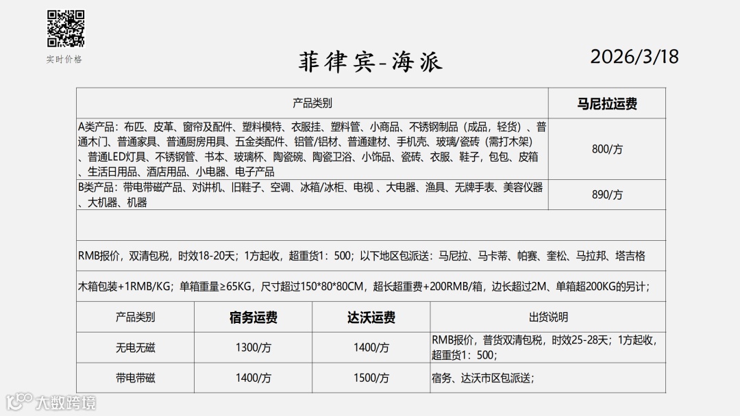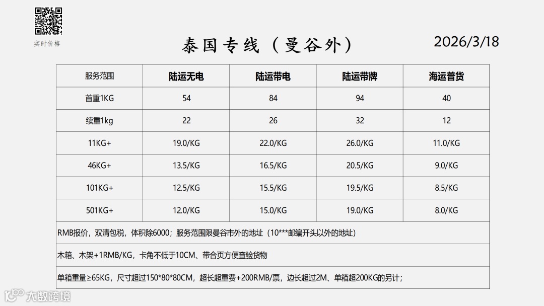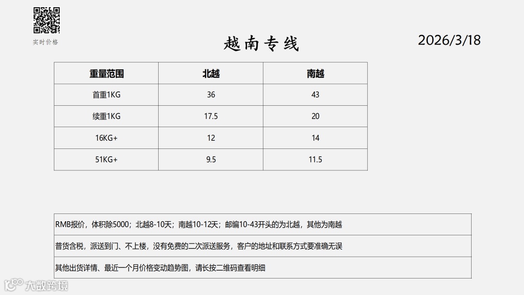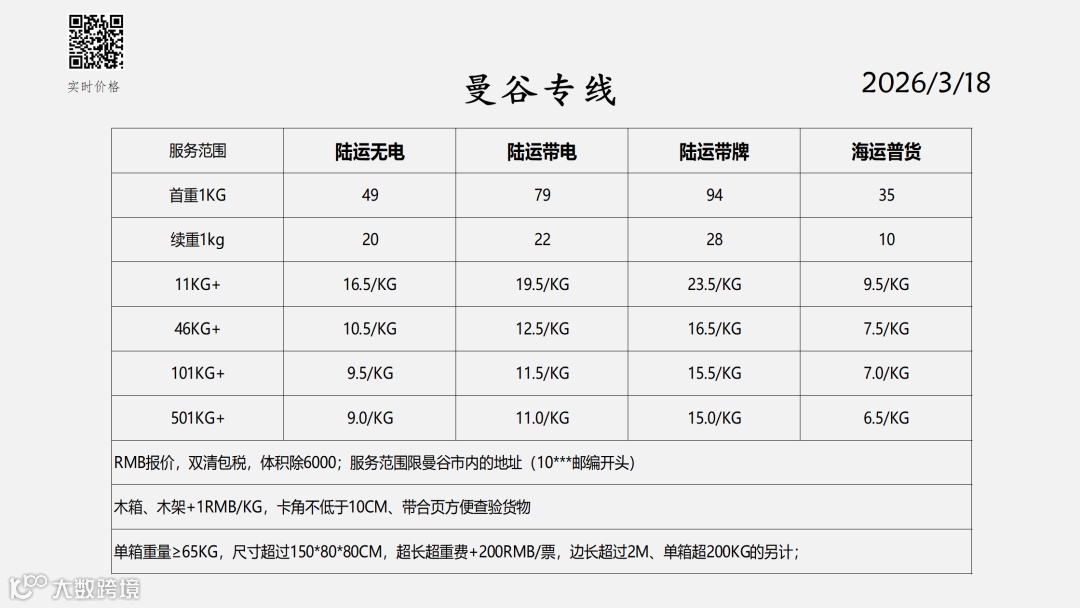 东南亚物流报价表——2026-3-18