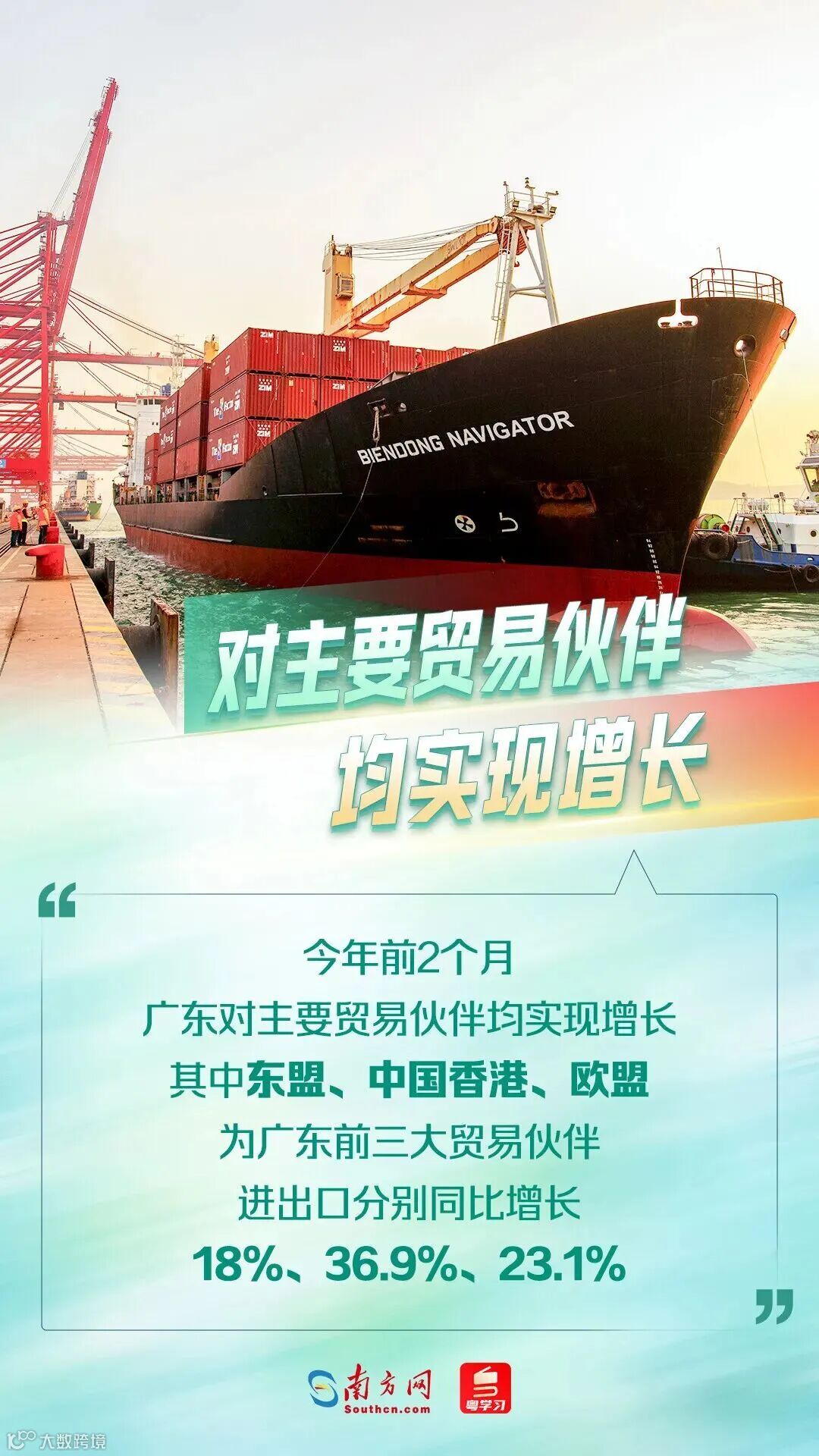 广东外贸开局向好:1—2月进出口达1.64万亿元,同比增长22.1%