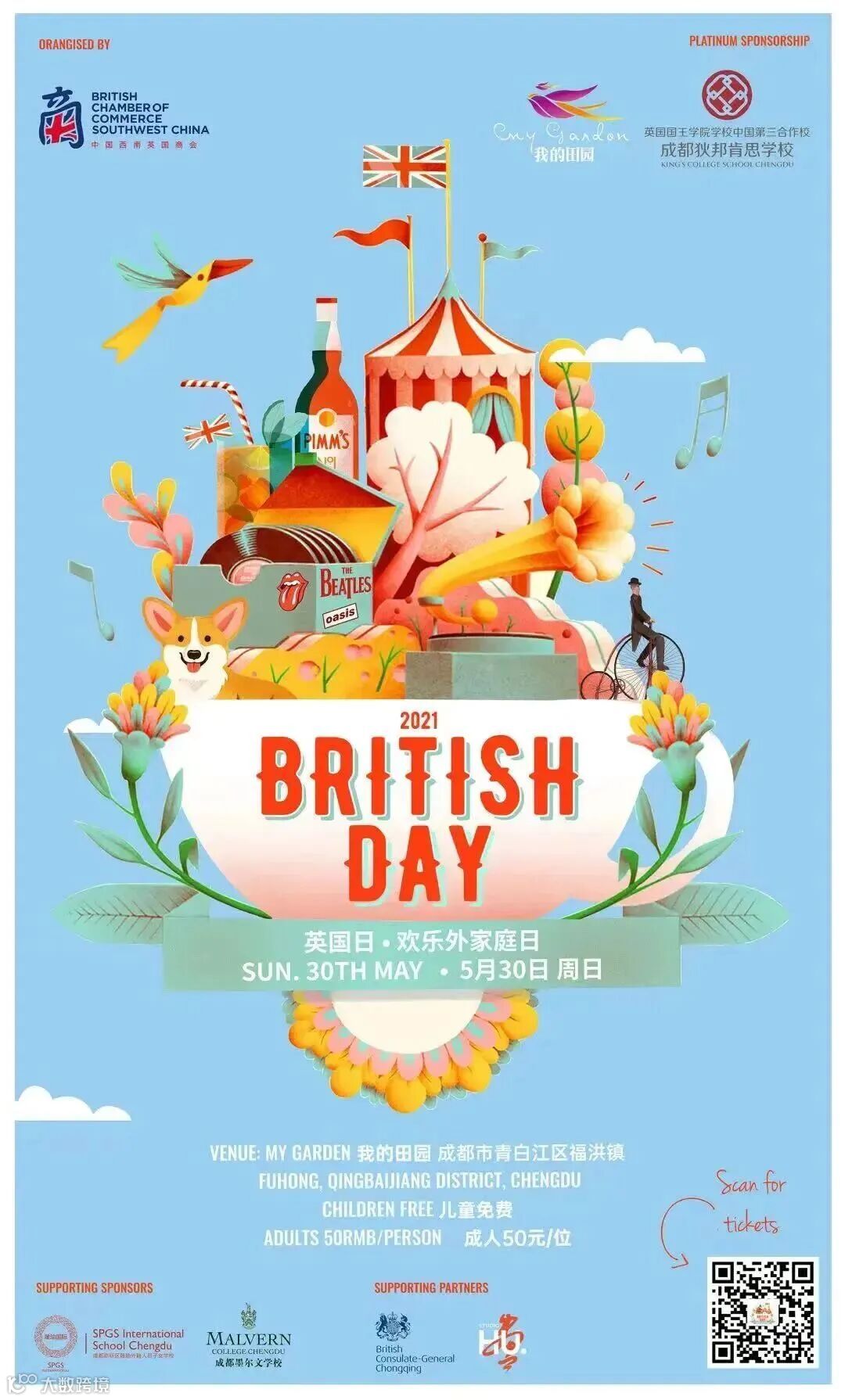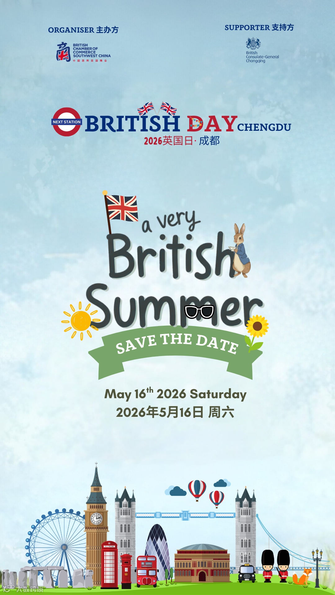 英国日活动由中国英国西南商会(BritCham SW)主办,获英国驻重庆总领事馆及英国文化教育协会支持。2026年5月,第十一届成都英国日将以“The 11th British Day Chengdu – A Very British Summer”为主题盛大回归。