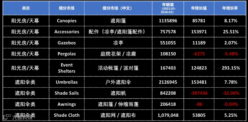 | 2 | 阳光房/天幕/遮阳伞类目整体市场趋势 |