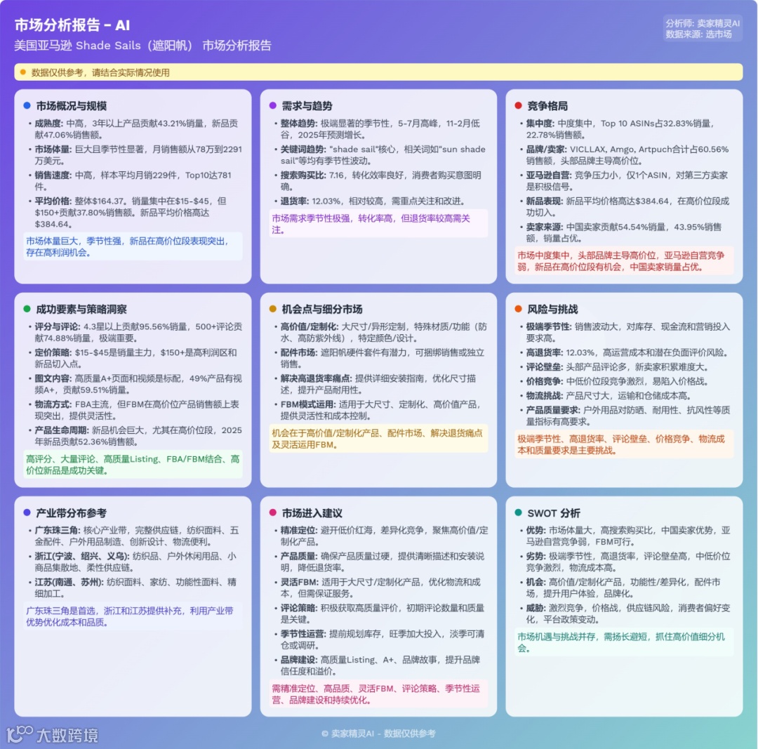 中国卖家供应链优势突出,但成功需聚焦高价值细分(如户外卷帘遮阳布),严控品控以降低退货率,并投入资源开展品牌化运营与精准营销。该赛道值得长期布局,但须以清晰战略、优质产品与持续投入为前提。