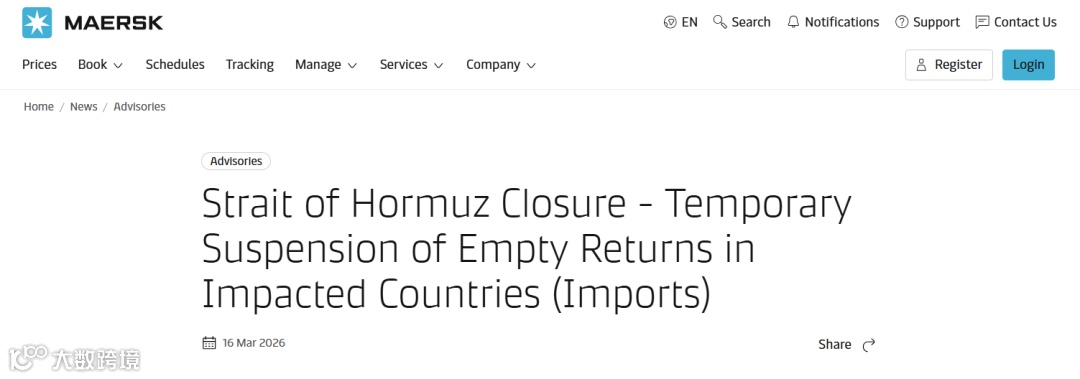 近日,马士基发布中东地区运营最新公告:自2026年3月16日起,恢复部分中东港口进出口订舱服务,并同步启动霍尔木兹海峡周边海域空集装箱返还临时安排。