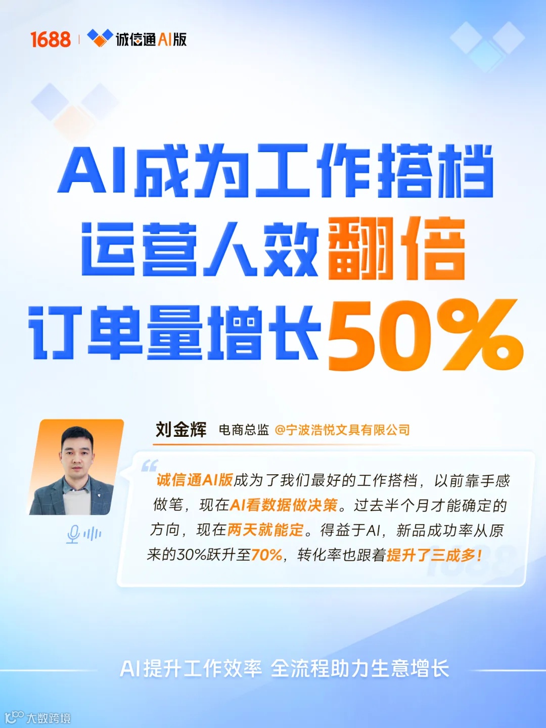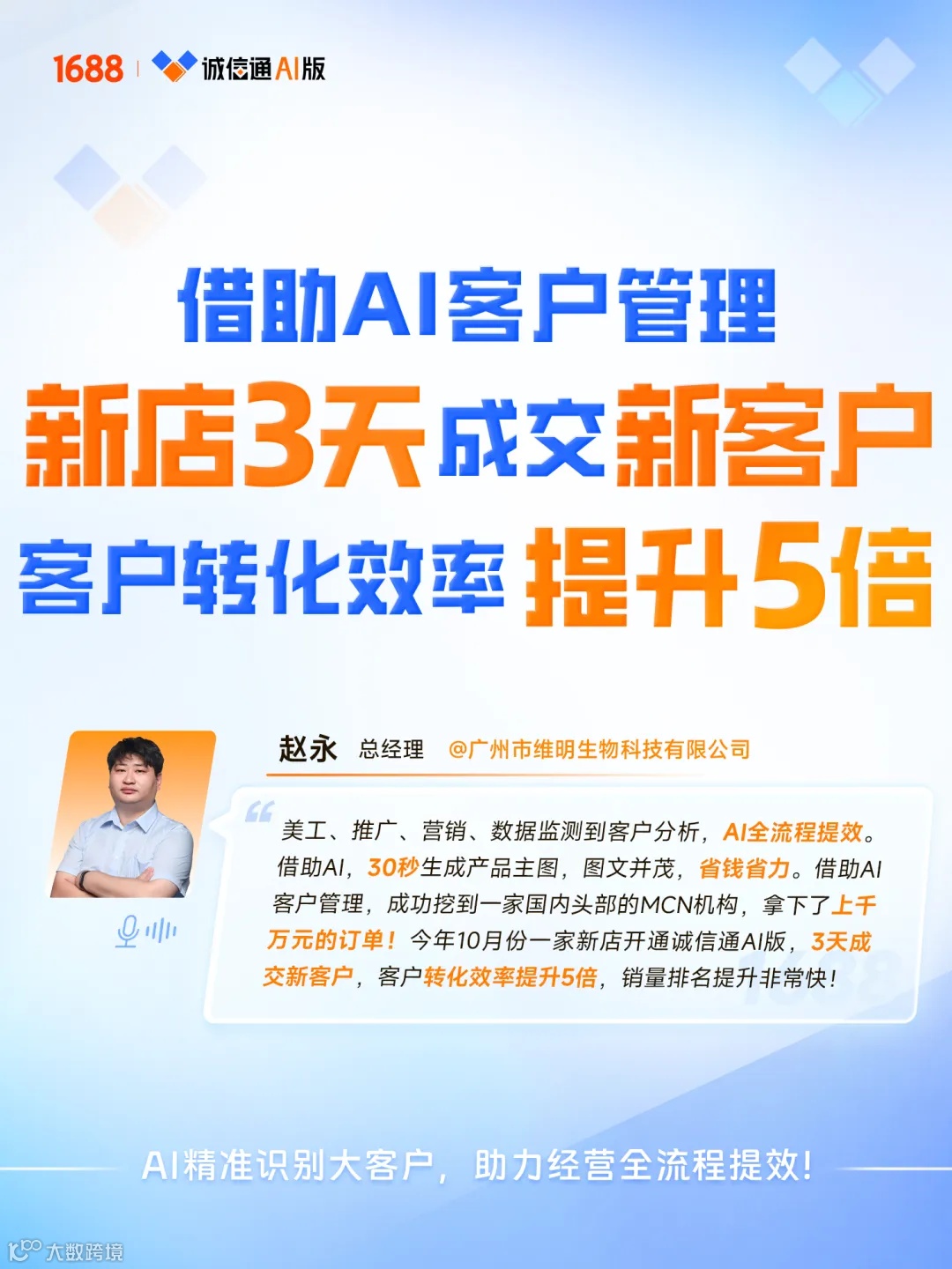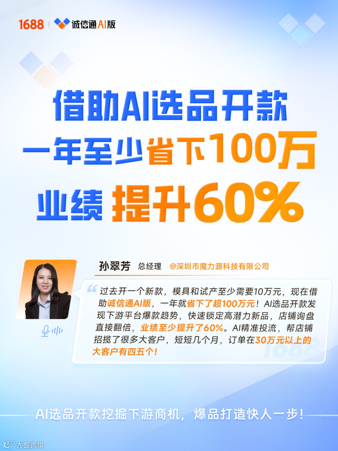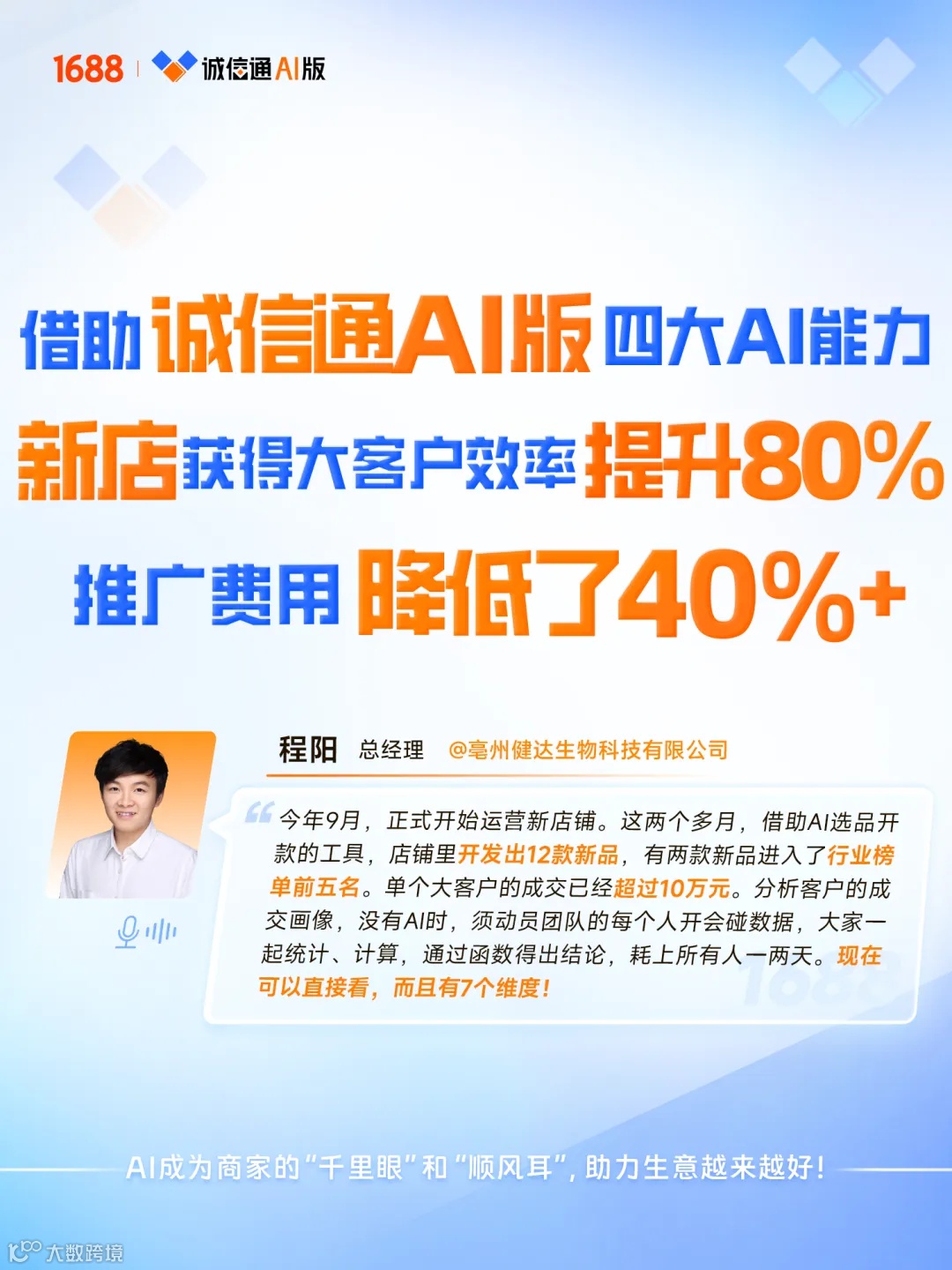 2026年是诚信通成立24周年,也是诚信通AI版正式启航的元年。越来越多商家积极拥抱AI技术,成为“AI实战派”——以数据洞察商机,用智能工具提效,在复杂多变的市场中找到确定性增长路径。