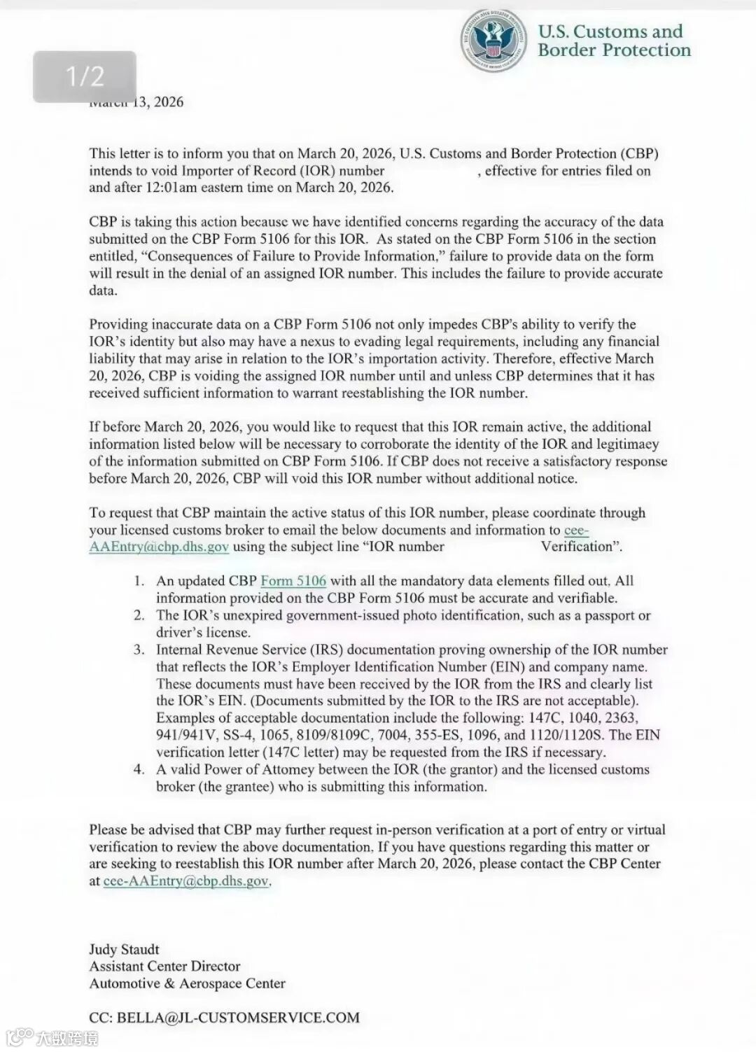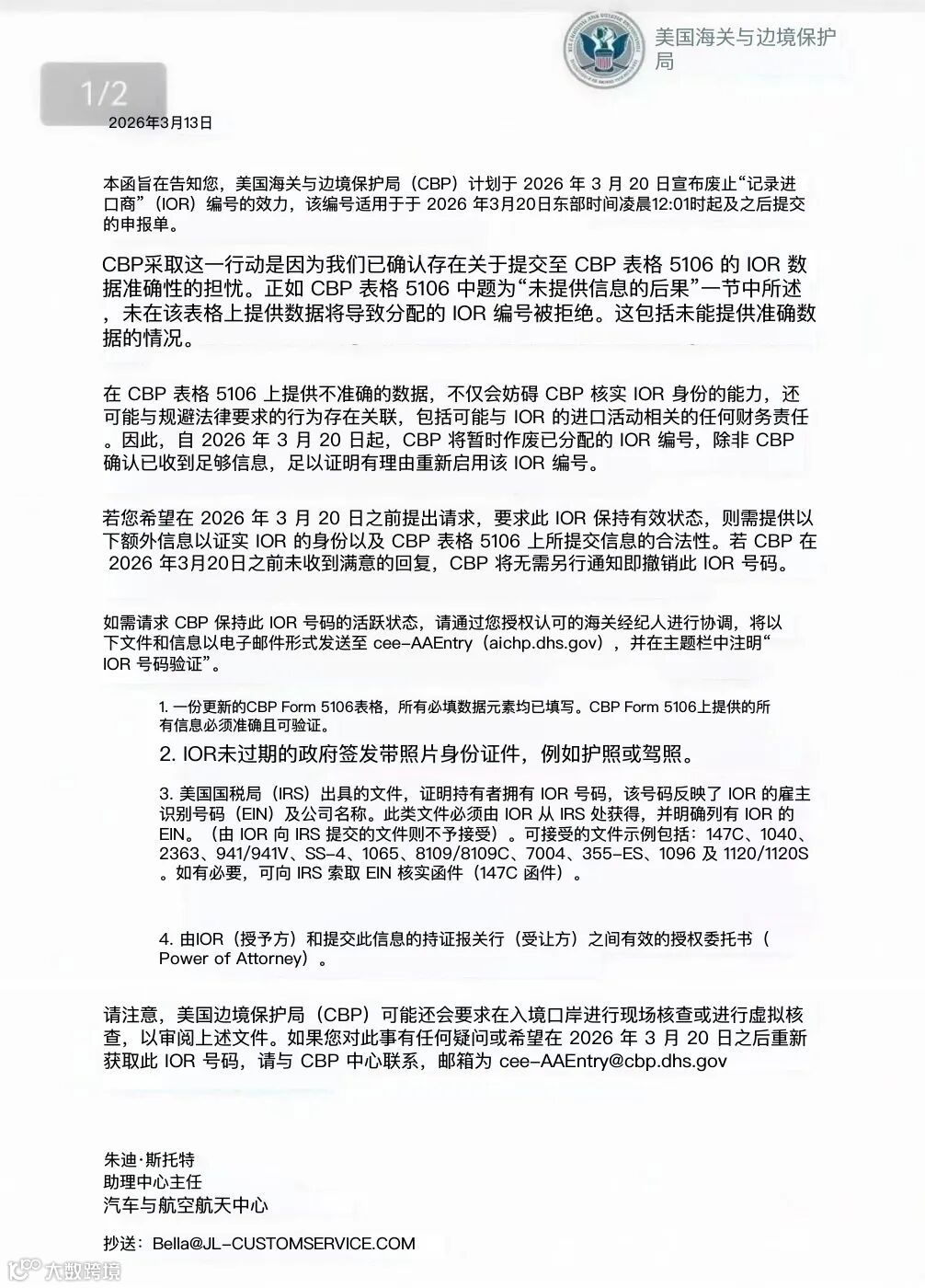 自2026年3月20日起,CBP要求所有IOR必须真实、唯一、可核验:信息不全、无法追溯、历史存疑者一律作废。共用、挂靠、虚拟IOR全面禁止——此举直击双清包税模式核心命门。
