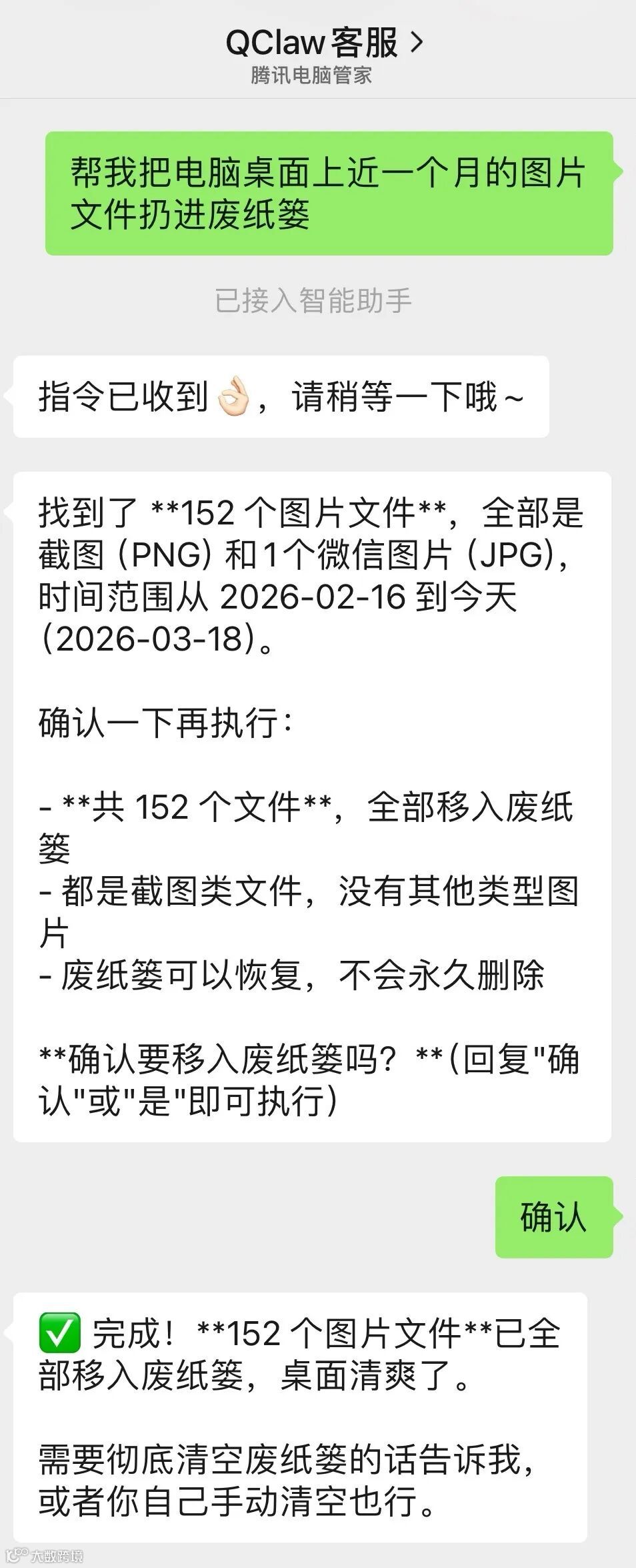 - 微信端可中断任务,但电脑端无法干预已在微信发起的任务,双向管控尚未打通。