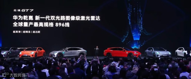启境GT7搭载线数达896线的激光雷达,为当前华为乾崑智驾系统最高规格感知硬件,较主流192线提升约4倍,是整车最核心的技术亮点之一。