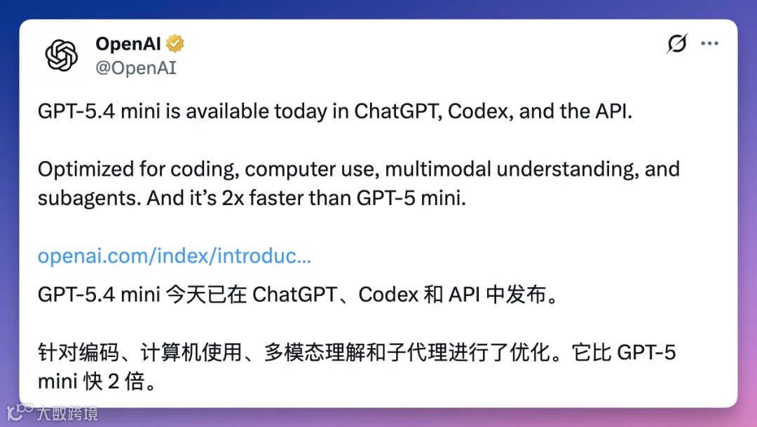 mini消耗配额仅为GPT-5.4的30%,单位成本下算力利用率显著提升。