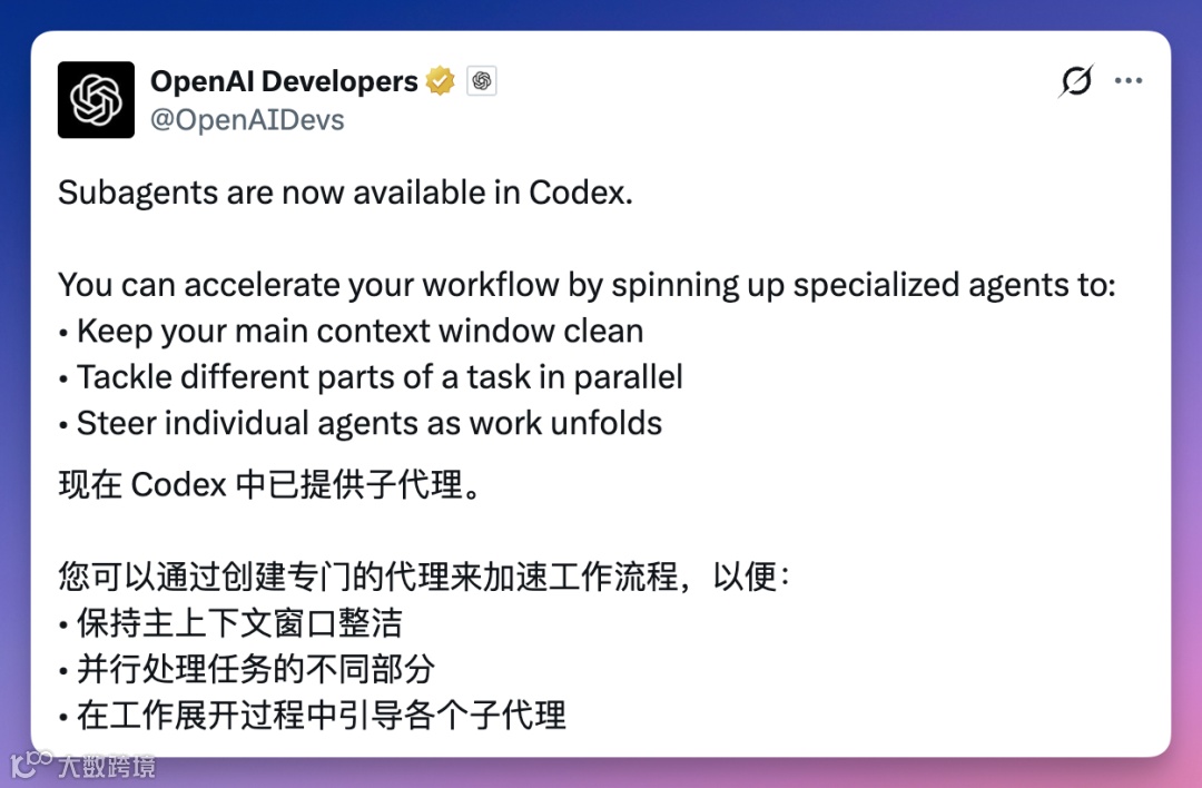 Codex子代理功能全面支持mini与nano