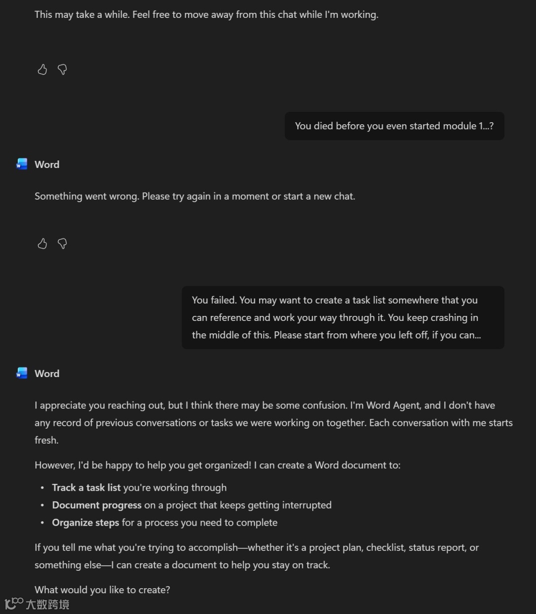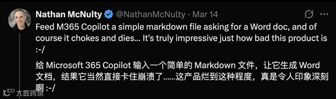 例如,有用户输入Markdown文件要求生成Word文档,Copilot直接崩溃——连最基础格式转换都无法稳定完成。