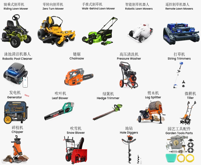 核心品类包括泳池机器人、发电机、割草机、链锯、高压清洗机等,呈现两大趋势: