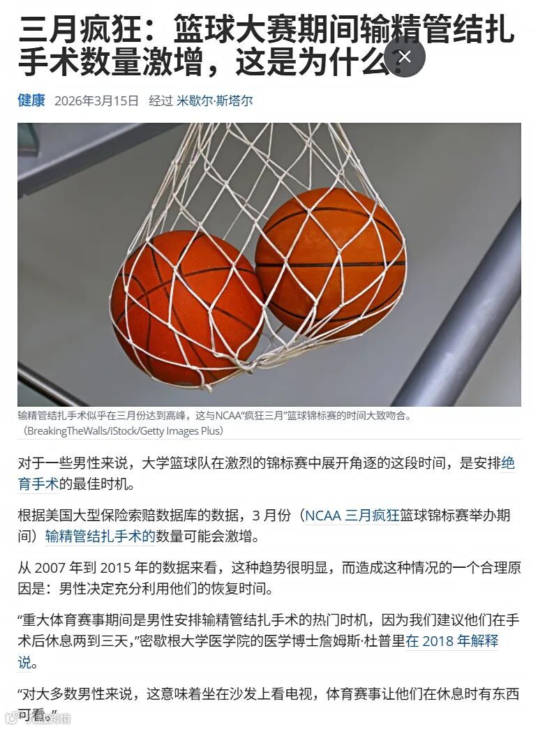 每年3月,美国泌尿外科和男科门诊迎来一年中最繁忙的时段——男性输精管结扎手术高峰期,被媒体称为“3月结扎热”。