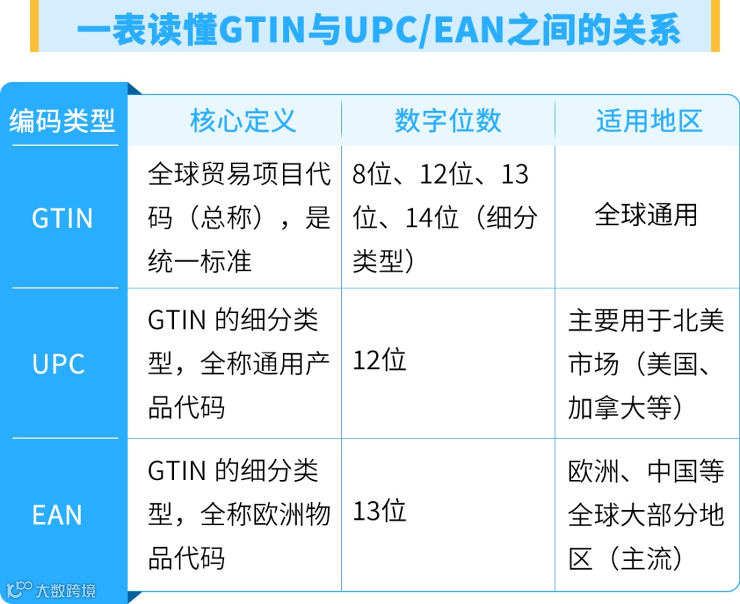 核心结论先划重点:GTIN是全球贸易项目代码的总称,UPC/EAN是具体细分类型,三者不是并列关系,UPC和EAN只是适用地区、数字位数不同,本质都是GTIN。