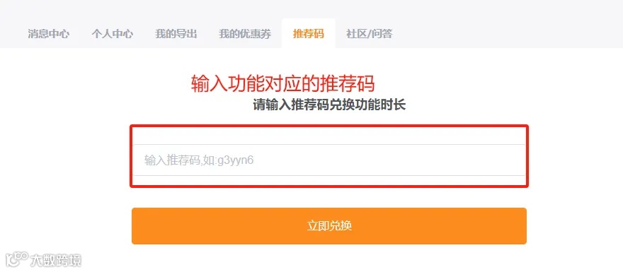 - 输入推荐码,点击兑换即可