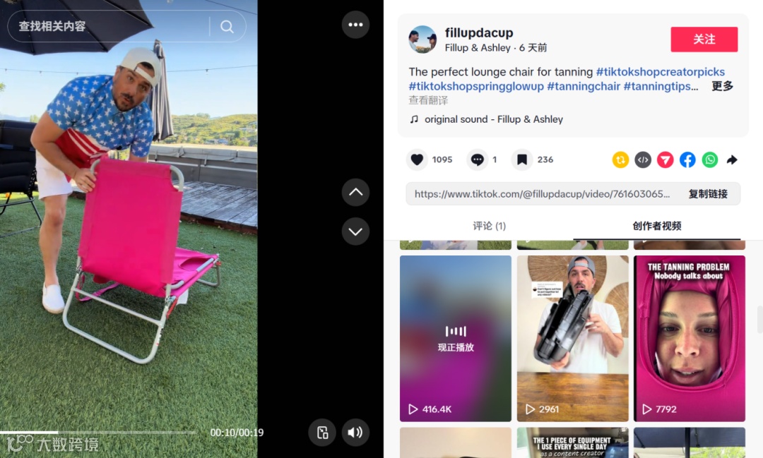 这就是TikTok场景种草的魅力。博主将产品置于阳光庭院、草坪或海边的休闲氛围中,让用户可以直观感受到“拥有它之后的惬意生活”。小钛发现:强视觉冲击+情感共鸣,能够极大缩短决策路径。