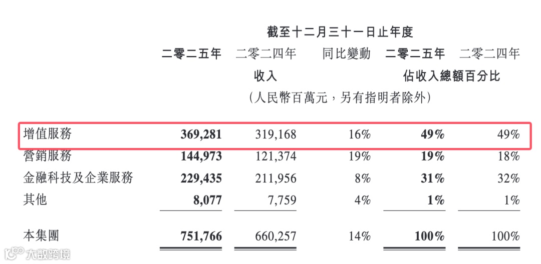 其增值服务板块贡献3693亿元收入,同比增长16%,占总营收比重稳定在49%。若将时间轴拉长,这一数字意味着腾讯游戏及相关增值服务年度收入迈过3500亿元门槛。