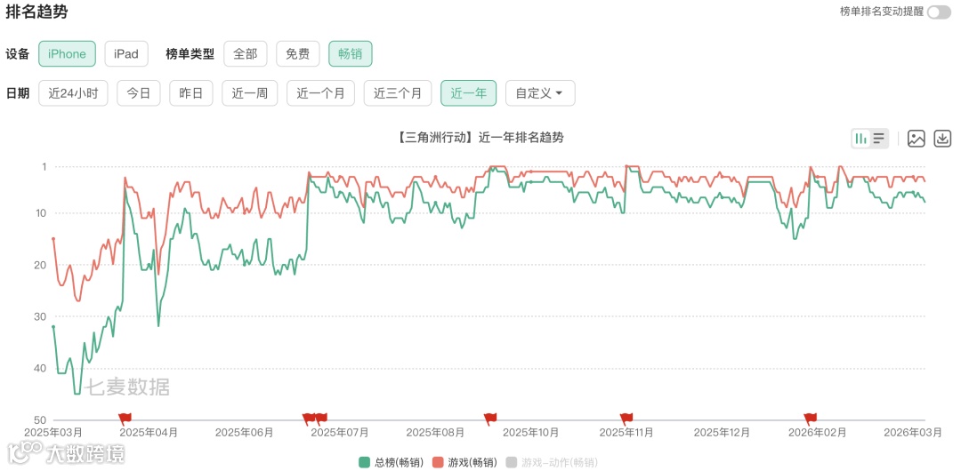 另一端是《三角洲行动》的异军突起,这款产品在移动端稳居畅销榜前十,PC端冲至网吧热力榜第二,成为腾讯在射击赛道的新支点。