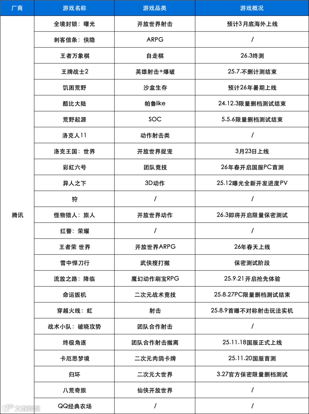 据陀螺君粗略统计,腾讯约有25款游戏已获得版号。游戏类型涵盖开放世界RPG、射击、动作、二次元等赛道。