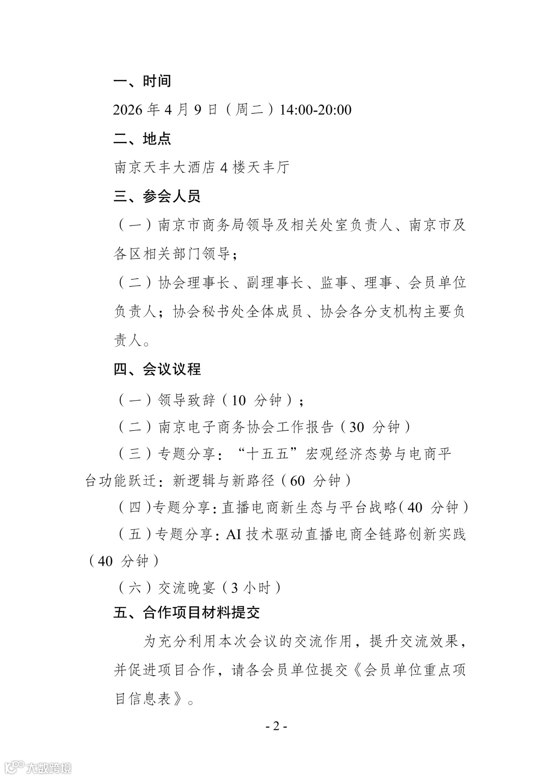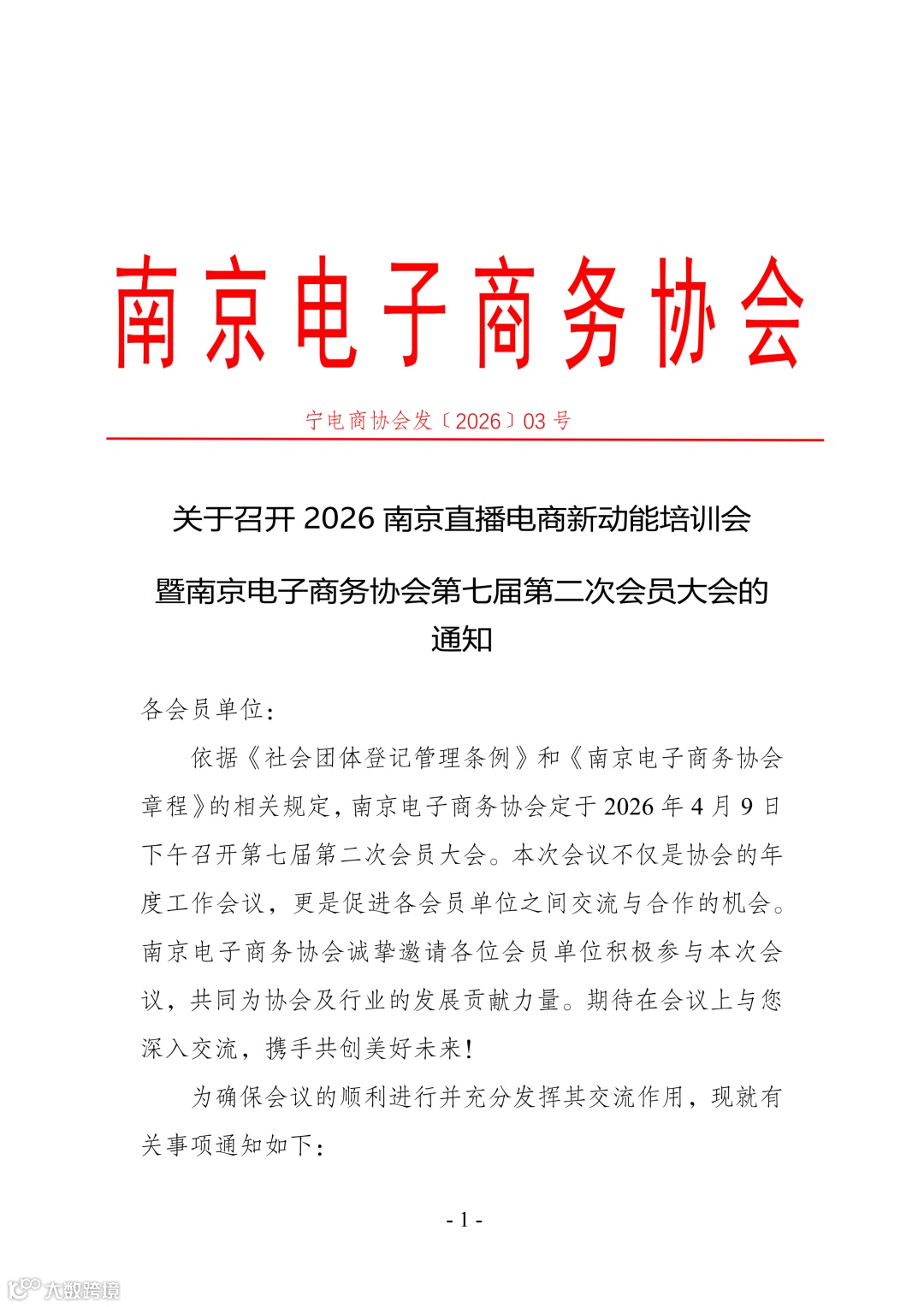 关于召开2026南京直播电商新动能培训会暨南京电子商务协会第七届第二次会员大会的通知