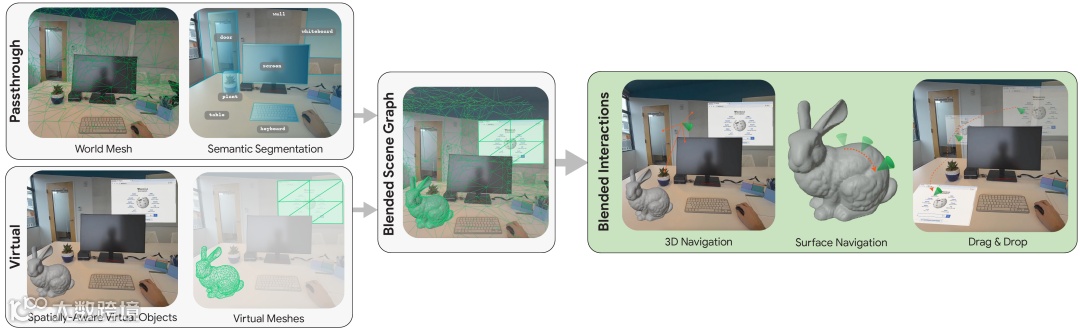 与以往仅限虚拟环境的方案不同,“World Mouse”利用语义分割和网格重建技术,将物理对象视为交互表面。通过一系列原型演示(包括物体操作和屏幕到现实世界的过渡)谷歌展示了跨现实光标如何实现真实与虚拟环境之间的无缝交互。