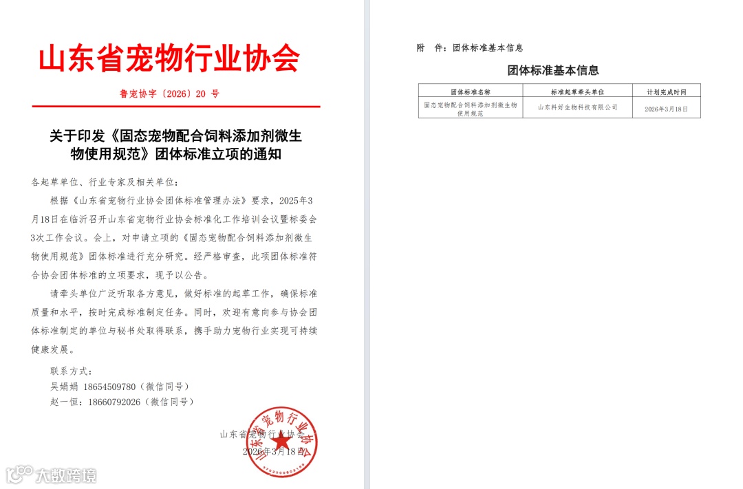 《固态宠物配合饲料添加剂微生物使用规范》团体标准立项