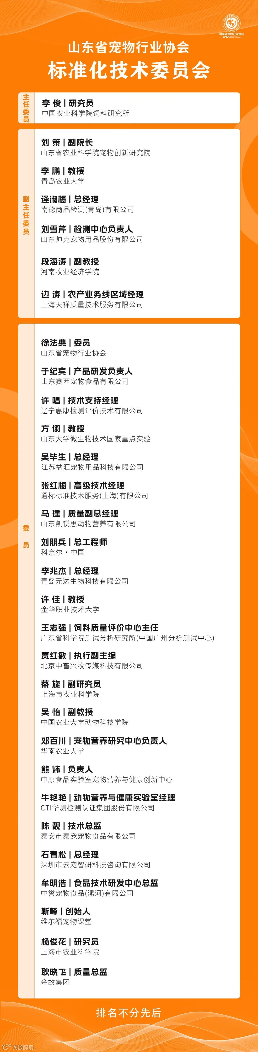 参与起草单位:北京中闽威商贸有限公司、山东汇聚宠物食品有限公司、临沂天润达生物科技有限公司、上海吉家宠物食品有限公司