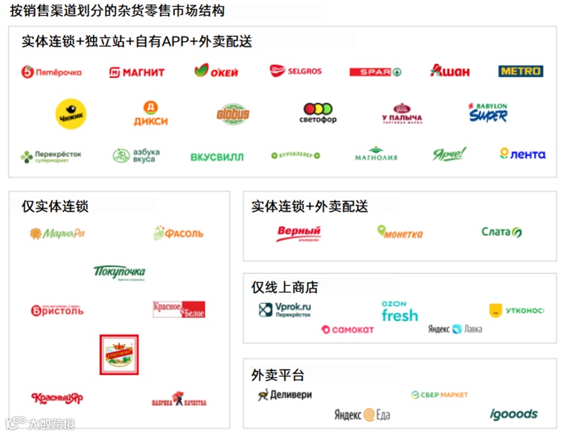 连锁零售渠道如Magnit、X5集团旗下Perekrestok占据主导地位,线上平台包括OZON Fresh、Vprok.ru等正在快速拓展。