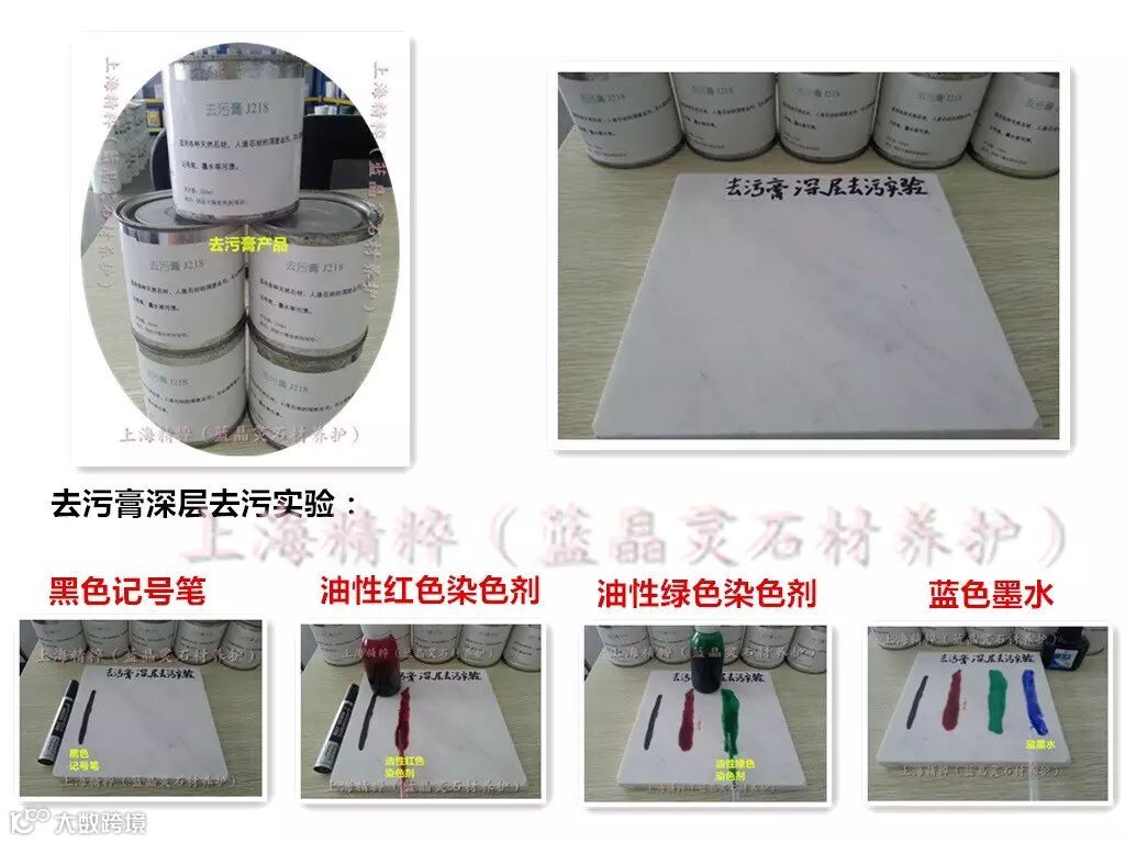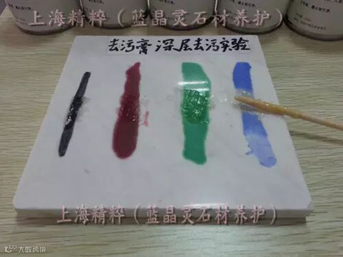 墨水、圆珠笔、水笔等笔迹易渗透进花岗岩孔隙或大理石裂纹中,时间越长越难清除。发现污染应立即擦除并着手清理,推荐使用去污膏进行处理。清理完成后,待石材完全干燥,建议补做防护处理以增强抗污能力。