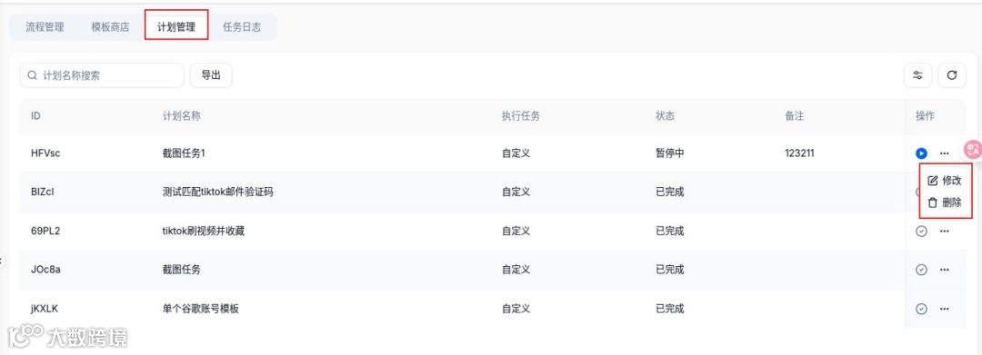 用户创建的循环任务会保存在【计划管理】,你可以随时修改循环任务的执行时间或删除任务。