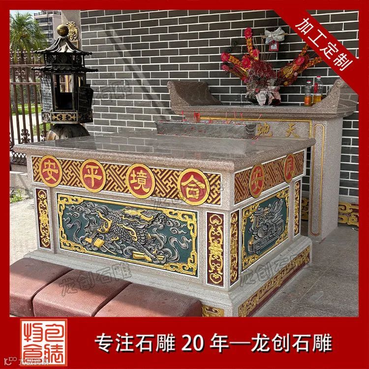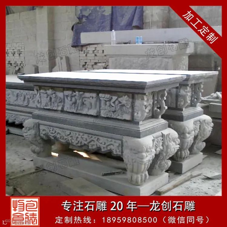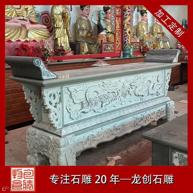 综合来看,石雕供桌的尺寸选择应结合寺庙实际空间、供奉内容与整体建筑风格,做到比例协调、功能完善、视觉庄重,从而营造肃穆和谐的宗教环境。
