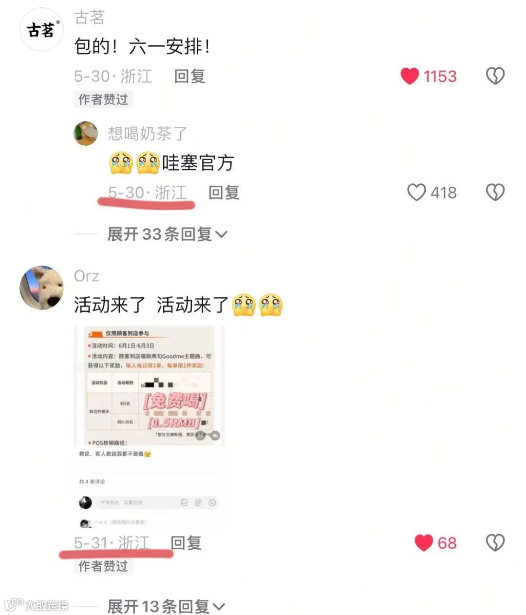 古茗在该视频的评论区中回应道:包的!六一安排!第二天就有抖音用户晒出了古茗内部的活动玩法资料图,古茗市场品牌部展现出了“中国速度”。
