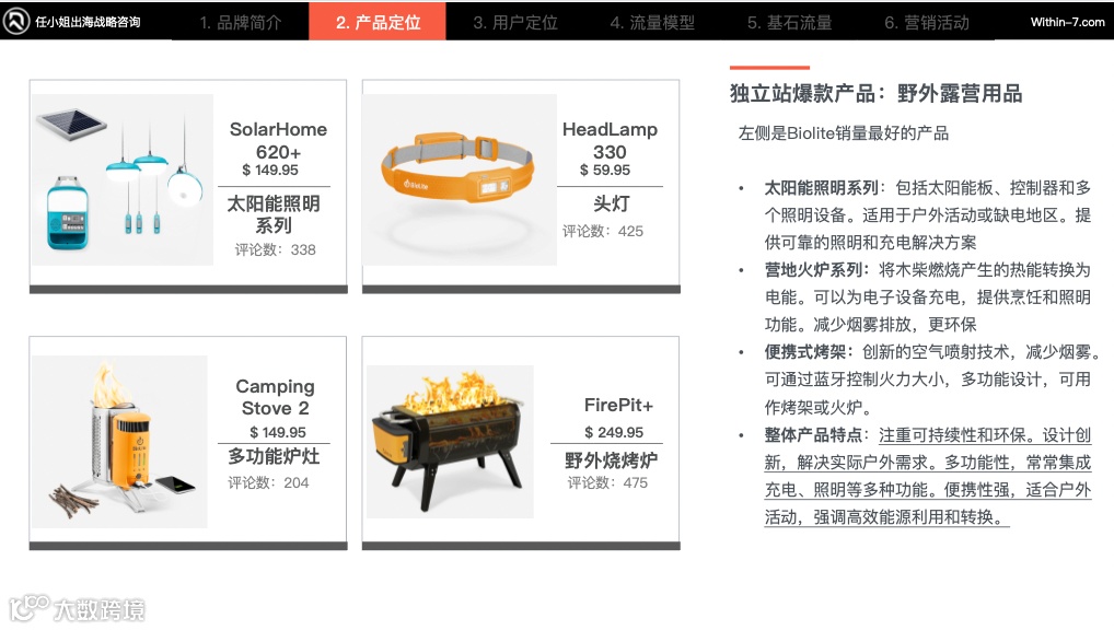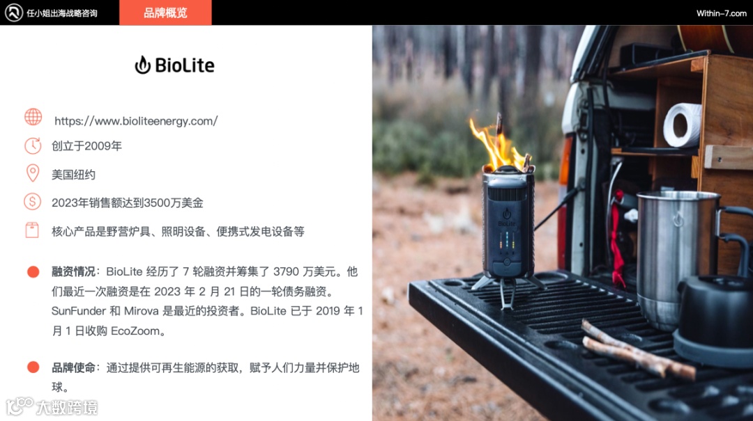我们会挑选优质案例在公众号分享讲解。本次案例是Biolite 野营炉具和照明设备品牌,年销售额为$3500万,产品价格跨度较大,在$40-$2399。