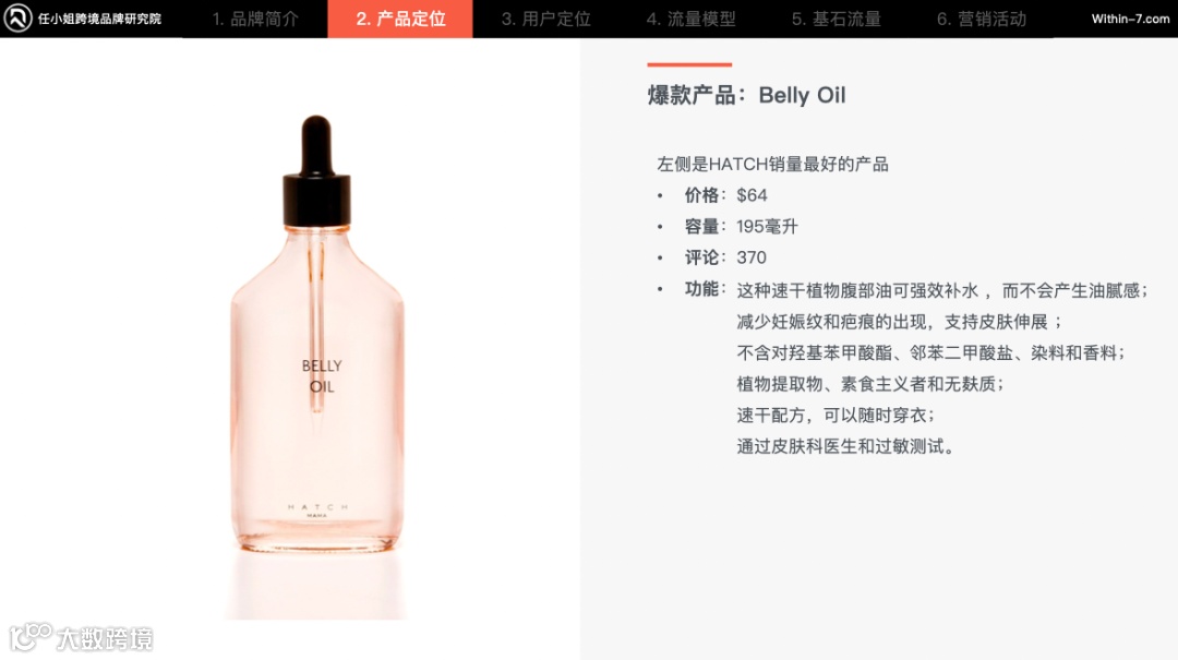 给大家举一个典型的案例,HATCH 孕妇装,虽然卖得是孕妇装,但是却是靠腹部祛妊娠纹的按摩油,吸引目标客户来完成购买的。