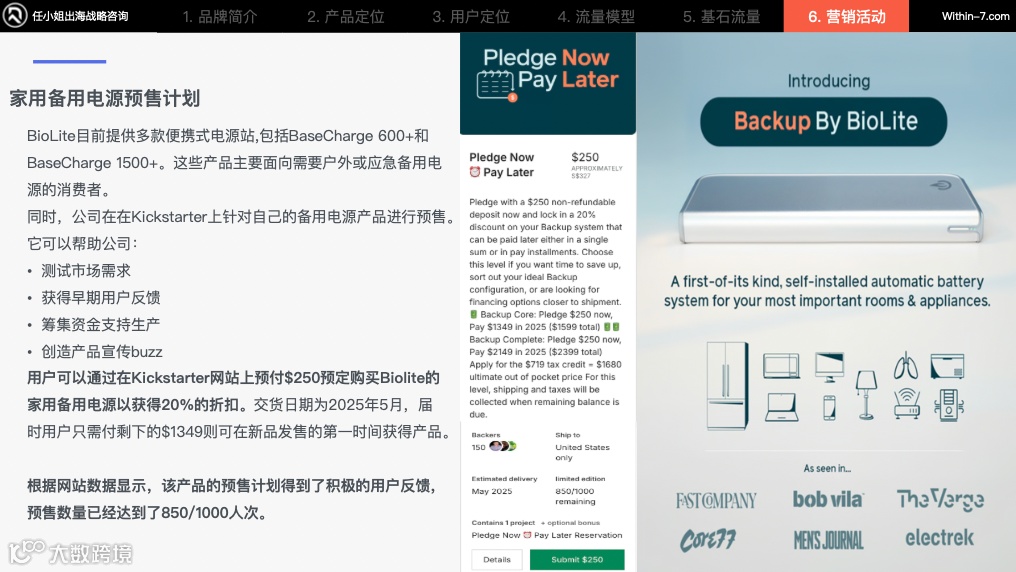 同时,公司在Kickstarter上针对自己的备用电源产品进行预售。它可以帮助公司:测试市场需求 、获得早期用户反馈、筹集资金支持生产、创造产品宣传buzz。
