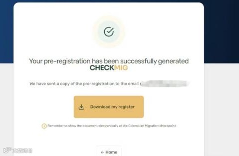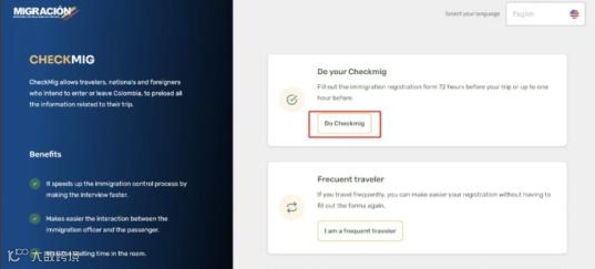 (二)哥伦比亚要求在航班起飞前 1 至 72 小时内填妥哥移民局 Check-Mig 网站上所要求的信息并获得确认回执(登机时会查看)。